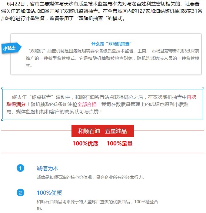 媒體與質監局雙隨機抽查油品計量,和順石油再次滿分獲贊!
