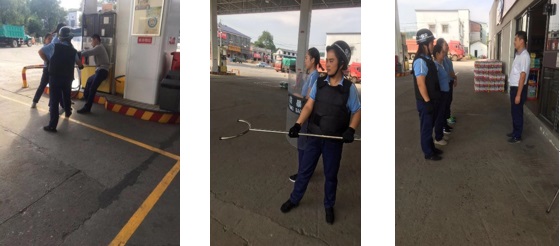 通過本次反恐應(yīng)急演練,增強了加油站員工對突發(fā)暴恐事件的防范意識,提升了大家使用防暴工具的熟練程度,鍛煉了員工之間的配合能力及實戰(zhàn)水平,為加油站今后處置應(yīng)急防恐積累了寶貴的經(jīng)驗。